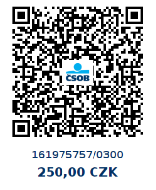 Plaťte převodem se zprávou “Stezka A.Dvořáka – jméno” (viz QR kód níže, částku i popis možno změnit), nebo v hotovosti na srazu, pak prosíme přesnou částku.